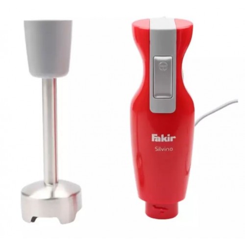 Бренд - Fakir. Тип устройства товара - Блендер. Тип блендера - Погружной. Модель - SILVINO . Основной цвет - Красный. Дополнительные цвета - Серый. Беспроводной - нет. Максимальная мощность (Вт) - 900 . Плавная регулировка скорости - нет. Материал погружной части - Нержавеющая сталь. Мерный стакан - нет. Колка льда - нет. Измельчитель - нет. Импульсный режим - нет. Турборежим - нет. Длина кабеля (м) - Китай. Гарантия - 24 месяца.