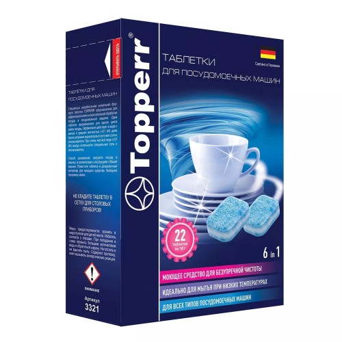 Таблетки для посудомоечных машин 3321 Topperr 22 шт. в уп.. Характеристики товара: