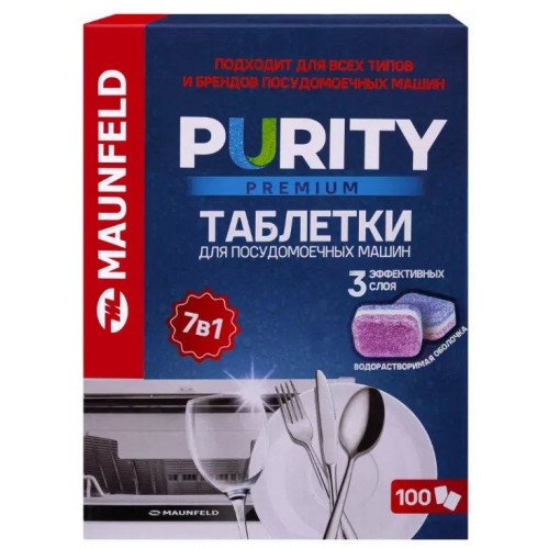 Таблетки для посудомоечных машин MAUNFELD Purity Premium all in 1 MDT100PP (100 шт. в упаковке)