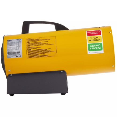 Бренд - BALLU. Тип устройства товара - Тепловая пушка. Модель - BHG-10. Основной цвет - Жёлтый. Дополнительные цвета - Чёрный. Максимальная мощность (Вт) - 10000. Рекомендуемая площадь обогрева (м²) - 300. Наличие дисплея - нет. Колеса для перемещения - нет. Ручка для перемещения - есть. Установка - Напольная. Защита от мороза - нет. Длина (мм).