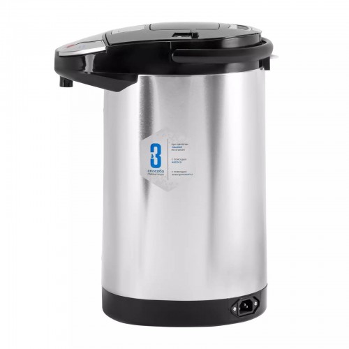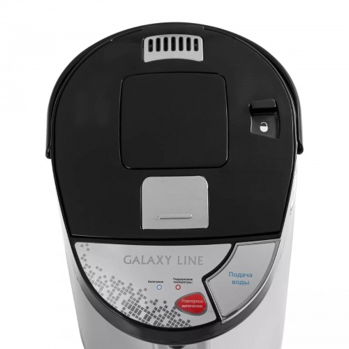 Бренд - Galaxy. Тип устройства товара - Термопот. Модель - GL 0613. Основной цвет - Серебристый. Дополнительные цвета - Чёрный. Объём (л) - 3,6. Мощность (Вт) - 900. Материал корпуса - Металл. Подача воды - При нажатии чашкой на клапан","Насос","Электропомпа. Индикация - Нет. Подсветка - нет. Гарантия - 12 месяцев.