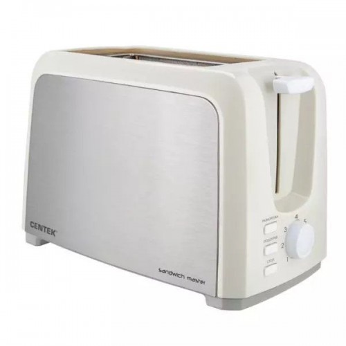 Бренд - Centek. Тип устройства товара - Тостер. Модель - СТ-1429. Основной цвет - Бежевый. Мощность (Вт) - 750 . Количество отделений - 2. Материал корпуса - Нержавеющая сталь, пластик. Одностороннее обжаривание - нет. Функция подогрева - есть. Термоизолированный корпус - нет. Размораживание - Да. Экстра-подъём для маленьких ломтиков хлеба - нет. Решётка для подогрева булочек - нет. Поддон для крошек - есть.