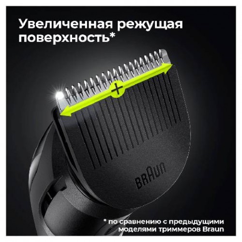 Острее, быстрее, эффективнее.Более широкая режущая зона головки триммера захватывает и срезает больше волос при каждом движении, чем любой предыдущий триммер Braun. Завершите свой образ за меньшее количество проходовДлинная бородаДлинный гребень помогает поддерживать длину бороды (1321 мм).