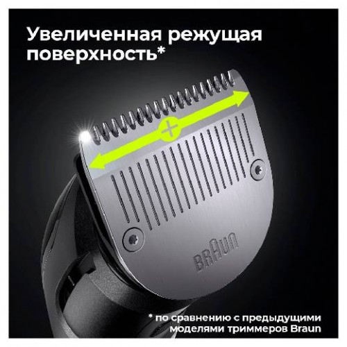 Острее, быстрее, эффективнее.Более широкая режущая зона головки триммера захватывает и срезает больше волос при каждом движении, чем любой предыдущий триммер Braun. Завершите свой образ за меньшее количество проходов.