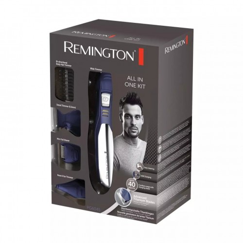 Бренд - Remington. Тип устройства товара - Триммер. Модель - PG6045 . Основной цвет - Синий. Назначение триммера - Для стрижки волос в носу и ушах","Для стрижки волос на теле","Для стрижки головы. Минимальная длина стрижки (мм) - 0.5. Максимальная длина стрижки (мм) - 20. Количество насадок - 5. Материал лезвий - Титан. Филировка - нет. Дисплей - нет. Питание устройства - От аккумулятора. Время автономной работы - 40 мин.