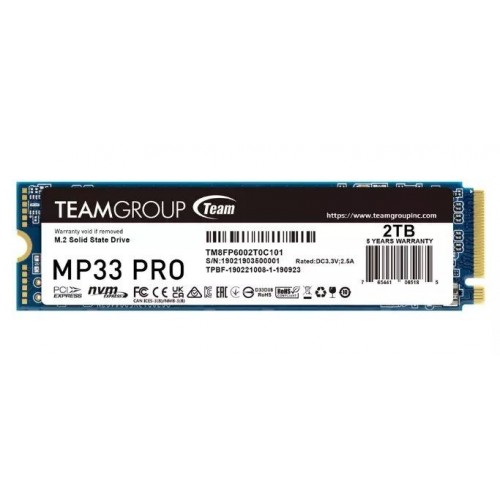 Твердотельный накопитель Team Group MP33 PRO 2Tb 2280 PCI-E 3.x x4 чтение - 2100 Мбайт/сек запись - 1700 Мбайт/сек TM8FPD002T0C101. Характеристики товара: