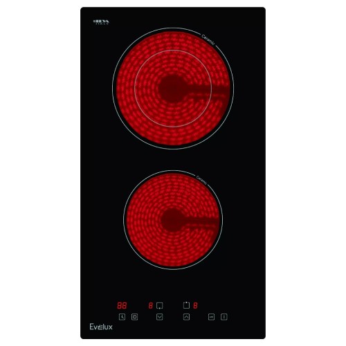Бренд - EVELUX . Тип устройства товара - Варочная поверхность электрическая. Модель - EV 3021. Основной цвет - Чёрный. Число конфорок - 2. Мощность подключения (кВт) - есть. Материал изготовления панели - Стеклокерамика. Конфорок индукционных - Нет. Конфорок двухконтурных - 1. Вид управления - Сенсор. Защита от детей - есть. Защитное отключение конфорок - есть. Другие функции - Отключение при проливе жидкости. Глубина для встраивания (см).