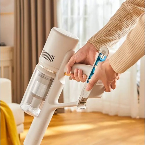 Тип устройства товара - Вертикальный пылесос. Бренд - Dreame . Тип пылесоса - Вертикальный. Модель - U20. Основной цвет - Бело-золотистый. Беспроводной - есть. Отсоединяемый ручной пылесос - есть. Тип уборки - Сухая. Сбор жидкости - есть. Тип пылесборника - Контейнер. Фильтр тонкой очистки - есть. Емкость пылесборника (Л) - 0.5. Расположение пылесборника - Сверху. Регулятор мощности - На рукоятке. Труба всасывания - Цельная. Материал трубы всасывания - металл. Турбощётка в комплекте - есть. Объём контейнера для чистой воды - Нет. Объём контейнера для грязной воды - Нет. Режим работы пылесоса - Обычный","Турбо","Эко. Потребляемая мощность (Вт) - 370. Мощность всасывания - 120 аВт. Тип питания - От аккумулятора. Емкость аккумулятора (мАч) - 2 500. Максимальное время работы от аккумулятора (мин) - 60 минут. Время зарядки аккумулятора - 240 мин. Количество аккумуляторов - 1. Крепление на стену - есть. Функции и особенности пылесоса - Подсветка зоны уборки","Моющийся фильтр. Уровень шума (дБ) - 84. Защита от перегрева - есть. Насадки для пылесоса - Универсальная щетка","Щелевая насадка","Насадка для мягкой мебели. Место для хранения насадок - нет. Комплектация пылесоса - Документация","Настенный держатель","Аккумулятор","Зарядное устройство. Дополнительно, особенности - циклонная система фильтрации. Ширина (мм) - 1.65. Страна производитель - Китай. Гарантия - 12 месяцев.