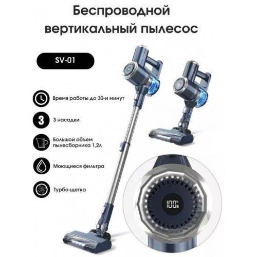 Тип устройства товара - Вертикальный пылесос. Бренд - WADE. Тип пылесоса - Вертикальный. Модель - SV-01. Основной цвет - Синий. Дополнительные цвета - Серебристый. Беспроводной - есть. Отсоединяемый ручной пылесос - есть. Тип уборки - С... →