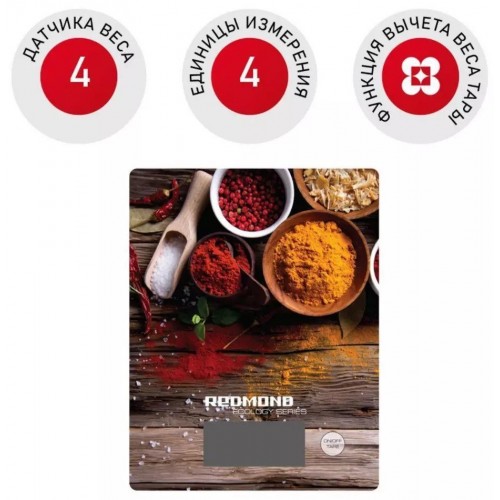 Бренд - Redmond. Тип устройства товара - Весы. Модель - RS-736. Вид весов - Электронные. Материал корпуса - Стекло. Единицы измерения веса - Граммы.