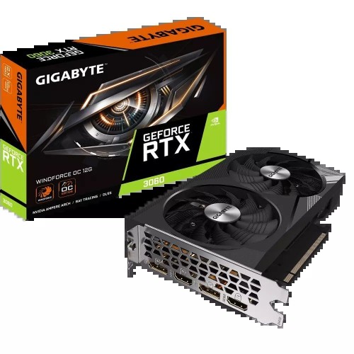 Бренд - Gigabyte. Тип устройства товара - Видеокарта. Модель - GV-N3060WF2OC-12GD. Основной цвет - Чёрный. Подсветка - нет. Линейка графических процессоров - GeForce. Поддержка стандартов видеокартой - CUDA","OpenGL 4.6","DirectX 12 Ultimate. Графический процессор - tGeForce RTX 3060. Максимальная частота в турбо режиме - 1792 МГц. Объем видеопамяти - 12 Гб. Тип видеопамяти - GDDR6. Разрядность шины памяти - 192 бит. Максимальная пропускная способность памяти - 360 Гбит с. Разъём подключения (ВНИ) - PCI Express 4.0 х 16. Видео интерфейсы - HDMI 2.1 x 2","DisplayPort 1.4a х 2. Максимальное разрешение - 7680x4320. Количество подключаемых мониторов - 4. Необходимо дополнительноe питаниe - есть. Рекомендуемый блок питания - 550 Вт. Низкопрофильная видеокарта - нет. Длина (мм) - 12 месяцев.