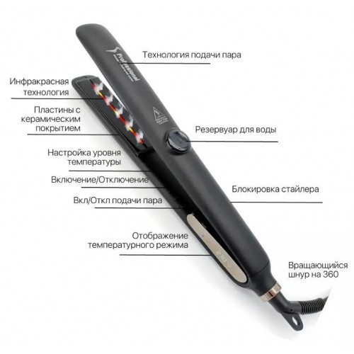 Выпрямитель паровой Healthy Silky KR-S089 (черный). Характеристики товара: